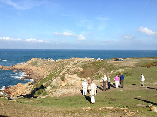 Having found the bedrooms at the Merton Hotel to be of a very good standard, we had an excellent breakfast. At 9.30 am we got on to a coach for a trip around the island. We were very fortunate as the weather was glorious all day. We travelled clockwise, generally hugging the coast as much as possible. Our first stop was for a photoshoot at Corbiere Phare at the south-west tip. The second stop was at Jersey Pearl (about three-quarters up the west coast) where most people thought about buying some pearls (though few people actually did so) and some just had a tea-break. After a short trip via Grosnez Point, we stopped for a lunchbreak at Greve De Lecq (a little bit in on the north coast). After lunch we were driven along the rest of the north coast (past places such as Bonne Nuite Bay) from where we could see the Normandy-Brittany coast quite clearly. At about 2pm we stopped for an 'ice cream break' at St. Catherine's Breakwater (coming down the East coast). Our final stop was at Gorey, for a short photoshoot looking across at Mont Orgueil Castle. The traffic was generally light so we made it back to the hotel at about 3.30pm, a little earlier than had been expected. Well-earned thanks were given to Mark, our driver and guide who had given us an interesting chat about the island as we went along. We were pleased to have time to relax (a few went swimming in the hotel's outdoors pool) before an excellent buffet dinner.
