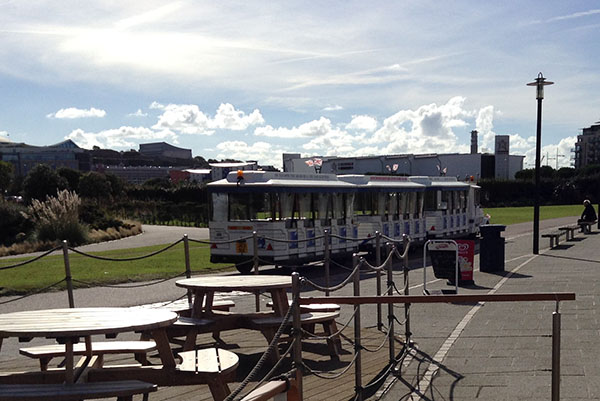 | E15M4A | The bus service around Jersey appeared to be rather impressive but an extra way of travelling from St. Helier along the coast (west) to St. Aubin, and back, was provided by 'Thomas the Tank Engine'. [Better photo sought!] |